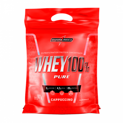 Informações sobre Whey 100% Pure Refil (907g) - Integralmédica O Whey 100% Pure Pouch é o suplemento ideal e essencial para quem busca ganho de massa magra e recuperação muscular. Composto pela proteína concentrada do soro de leite, são 21 g de proteína por dose, 9,7 g de aminoácidos essenciais e 4,6 g de BCAA.Uma ótima opção para o pós treino, o Whey 100% Pure Pouch auxilia na manutenção da massa magra, possui baixo teor de carboidrato, gordura e sódio. Zero Glúten.Alta qualidade para a sua suplementação, o Whey 100% Pure Integralmédica contém matéria-prima importada, e ótima absorção pelo organismo, evitando a sensação de inchaço após o consumo.A proteína do soro é a fonte mais nobre de proteína do leite com alto valor biológico, isso devido a sua alta concentração de aminoácidos essenciais e aminoácidos de cadeia ramificada (BCAA), esses aminoácidos têm papel fundamental na síntese de proteínas e construção muscular. BENEFICIOS:- Ganhar massa muscular- Acelerar o processo de recuperação- Melhorar a performanceINGREDIENTES BANANA: Proteína concentrada do soro de leite, aromatizante, espessante goma xantana e edulcorante sucralose. ALÉRGICOS: CONTÉM DERIVADOS DE LEITE E SOJA*. *Ingrediente utilizado no processo de fabricação da proteína do soro de leite com função de instantaneização. NÃO CONTÉM GLÚTEN. CONTÉM LACTOSE. CONTÉM AROMATIZANTE SINTÉTICO IDÊNTICO AO NATURAL.INFORMAÇÃO NUTRICIONAL Porção de 30 g [2 scoops] Quantidade por porção%VD*Valor Energético120 kcal = 502 Kj (*)Carboidratos 5,6 g(*)Proteínas20 g40Gorduras totais 1,9 g(*)Gorduras saturadas 1,7 g(*)Gorduras trans 0 g(*)Fibra alimentar0 g(*)Sódio68 mg(*)* Valores diários de referência com base em uma dieta de 2000 calorias ou 8400kj. Seus valores diários podem ser maiores ou menores dependendo de suas necessidades energéticas. INGREDIENTES CHOCOLATE: Proteína concentrada do soro de leite, cacau em pó, canela em pó, café solúvel, aromatizante natural, espessante goma xantana e edulcorante sucralose. ALÉRGICOS: CONTÉM DERIVADOS DE LEITE E SOJA. *Ingrediente utilizado no processo de fabricação da proteína do soro de leite com função de instantaneização. NÃO CONTÉM GLÚTEN. CONTÉM LACTOSE. CONTÉM AROMATIZANTE SINTÉTICO IDÊNTICO AO NATURAL.INFORMAÇÃO NUTRICIONAL Porção de 30 g [2 scoops] Quantidade por porção% VD*Valor Energético117 Kcal = 510 KJ6 %Carboidratos4,9g2 %Proteínas20g40 %Gorduras Totais1,9g3 %Gorduras Saturadas1,0g5 %Gorduras Trans0g0 %Fibra Alimentar0g0 %Sódio58mg2 %* Valores diários de referência com base em uma dieta de 2000 calorias ou 8400kj. Seus valores diários podem ser maiores ou menores dependendo de suas necessidades energéticas. INGREDIENTES CHOCOLATE MALTADO: Proteína concentrada do soro de leite, extrato de malte, cacau em pó, aromatizante natural, espessante goma xantana e edulcorante sucralose. ALÉRGICOS: CONTÉM CEVADA DERIVADOS DE LEITE E SOJA. PODE CONTER AVEIA, CENTEIO, SOJA, LEITE E TRIGO. *Ingrediente utilizado no processo de fabricação da proteína do soro de leite com função de instantaneização. NÃO CONTÉM GLÚTEN. CONTÉM LACTOSE. CONTÉM AROMATIZANTE SINTÉTICO IDÊNTICO AO NATURAL.INFORMAÇÃO NUTRICIONAL Porção de 30 g [2 scoops] Quantidade por porção% VD*Valor Energético116 Kcal = 485 KJ6 %Carboidratos4,5g2 %Proteínas20g40 %Gorduras Totais2,0g4 %Gorduras Saturadas1,0g5 %Gorduras Trans0g0 %Fibra Alimentar0,9g4 %Sódio61mg3 %* Valores diários de referência com base em uma dieta de 2000 calorias ou 8400kj. Seus valores diários podem ser maiores ou menores dependendo de suas necessidades energéticas. INGREDIENTES COOKIES AND CREAM: Proteína concentrada do soro de leite, cookies, aromatizante, espessante goma xantana e edulcorante sucralose. ALÉRGICOS: CONTÉM TRIGO, DERIVADOS DE LEITE E SOJA*. PODE CONTER AVEIA, CENTEIO, CEVADA E LEITE. *Ingrediente utilizado no processo de fabricação da proteína do soro de leite com função de instantaneização. CONTÉM GLÚTEN. CONTÉM LACTOSE. CONTÉM AROMATIZANTE SINTÉTICO IDÊNTICO AO NATURAL.INFORMAÇÃO NUTRICIONAL Porção de 30 g [2 scoops] Quantidade por porção% VD*Valor Energético120 Kcal = 502 KJ6 %Carboidratos5,7g2 %Proteínas20g40 %Gorduras Totais1,9g3 %Gorduras Saturadas1,0g5 %Gorduras Trans0g0 %Fibra Alimentar0g0 %Sódio63mg3 %* Valores diários de referência com base em uma dieta de 2000 calorias ou 8400kj. Seus valores diários podem ser maiores ou menores dependendo de suas necessidades energéticas. INGREDIENTES BAUNILHA: Proteína concentrada do soro de leite, cacau em pó, aromatizante e edulcorante sucralose. ALÉRGICOS: CONTÉM DERIVADOS DE LEITE E SOJA*. *Ingrediente utilizado no processo de fabricação da proteína do soro de leite com função de instantaneização. NÃO CONTÉM GLÚTEN. CONTÉM LACTOSE. CONTÉM AROMATIZANTE SINTÉTICO IDÊNTICO AO NATURAL.INFORMAÇÃO NUTRICIONAL Porção de 30 g [2 scoops] PORÇÃO% VD*Valor Energético116 Kcal = 485 KJ6 %Carboidratos4,6g2 %Proteínas21g42 %Gorduras Totais2,0g4 %Gorduras Saturadas1,1g5 %Gorduras Trans0g0 %Fibra Alimentar0g0 %Sódio60mg3 %* Valores diários de referência com base em uma dieta de 2000 calorias ou 8400kj. Seus valores diários podem ser maiores ou menores dependendo de suas necessidades energéticas. INGREDIENTES MORANGO: Proteína concentrada do soro de leite, aromatizante, acidulante ácido cítrico, edulcorante sucralose e corantes natural carmim e artificial bordeaux. ALÉRGICOS: CONTÉM DERIVADOS DE LEITE E SOJA*. *Ingrediente utilizado no processo de fabricação da proteína do soro de leite com função de instantaneização. NÃO CONTÉM GLÚTEN. CONTÉM LACTOSE. CONTÉM AROMATIZANTE SINTÉTICO IDÊNTICO AO NATURAL. COLORIDO ARTIFICIALMENTE.INFORMAÇÃO NUTRICIONAL Porção de 30 g [2 scoops] PORÇÃO% VD*Valor Energético120 Kcal = 502 KJ6 %Carboidratos4,6g2 %Proteínas21g42 %Gorduras Totais1,9g3 %Gorduras Saturadas